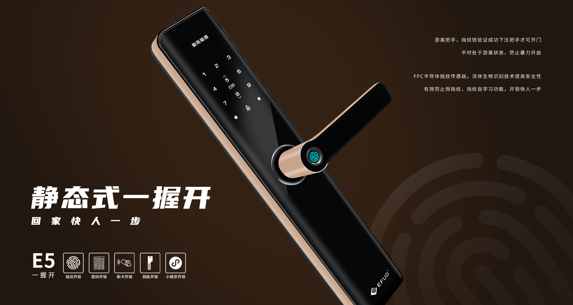 中山市愛而福德電子科技有限公司專注家用智能鎖25年,是一家集產品研發(fā)、制造、銷售、售后于一體全產業(yè)鏈的國家高新技術企業(yè)。公司擁有現(xiàn)代化生產基地8500平方米,具備35000把/月的生產規(guī)模及一支十多年專業(yè)的研發(fā)團隊,產品均擁有100%自主知識產權。公司一直秉承“創(chuàng)新智造,工匠精神”,為每一位用戶提供智能、便捷、安全的高品質生活!